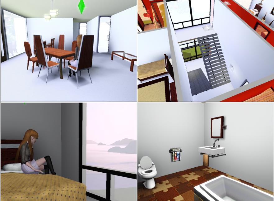 a big house for 5 people. But there are 3 unfurnished rooms, so it may as well be for 8 :3 This one was built on sunnyside 477 (the name may be wrong since I play russian version. It's the lot on the beach in the down-left of sunset valley). And I've realised what I have to do to show more of the house ^^ enjoy