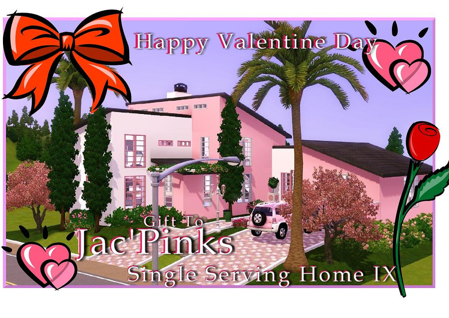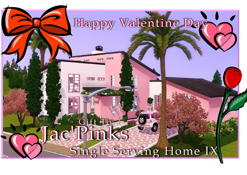 Happy Valentines Day to all!! This home is dedicated to My Dear Friend Jacqui. I made this home especially for her Love of Pink. This is also part IX of my Single Serving Series. As always it is for the Rich Single Sim all the luxuries in a single serving home. This Lovely home is fully furnished with all amenities included. With a very Charming Hot Tub Terrace overlooking the beach.
