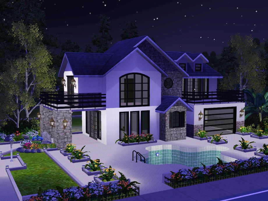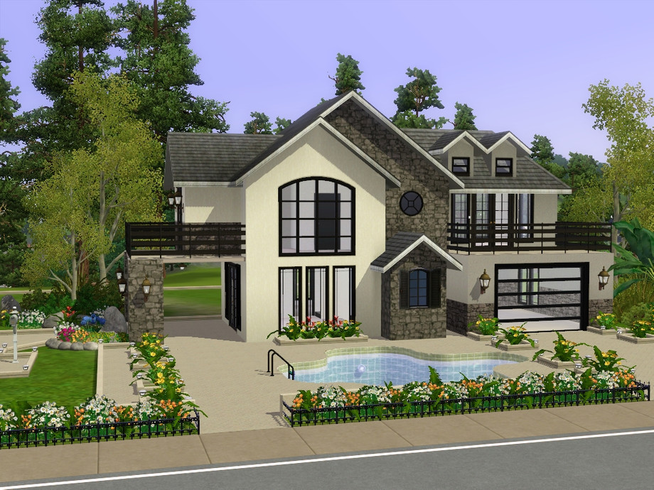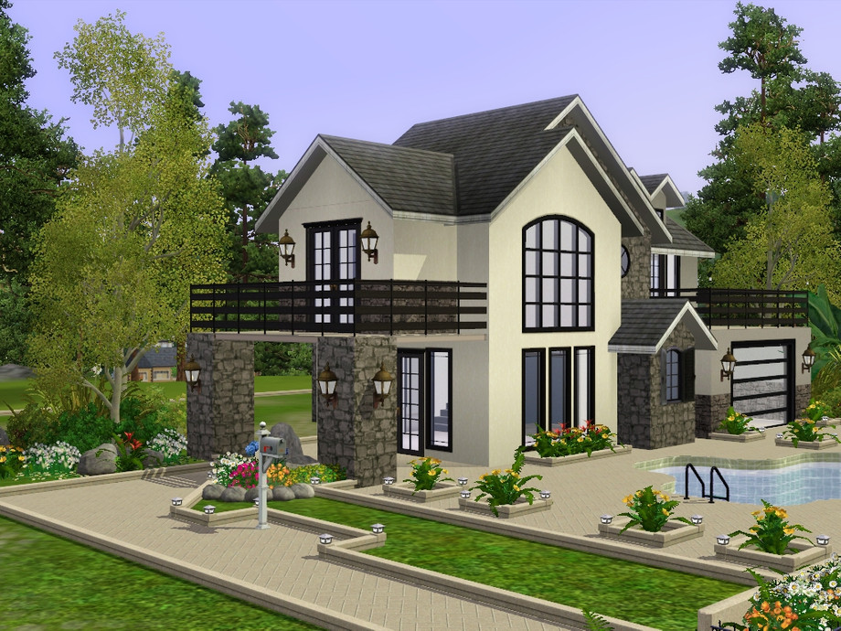 2 bedroom, 3 terraces, 2 porches, 1 toilet and bath, 1 car garage home. Built with World Adventures, Ambitions, High End Loft and Fast Lane expansion pack.