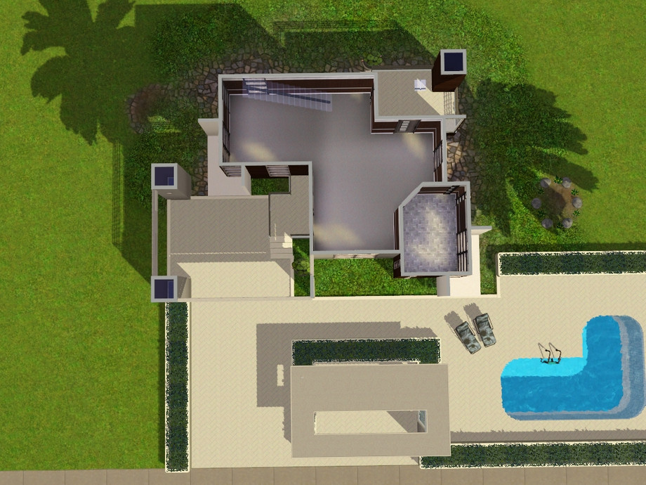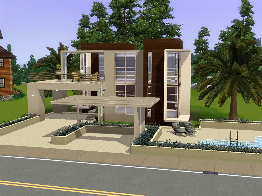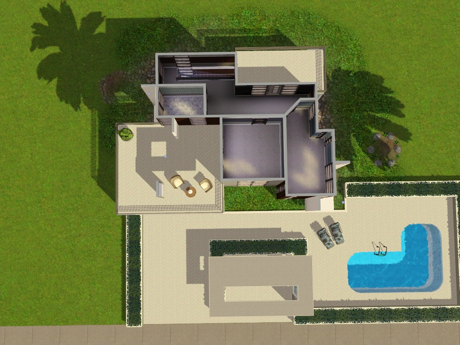 2 bedroom, 1 toilet and bath, 1 car garage home with pool. Built with World Adventures, Ambitions, High End Loft and Fast Lane expansion packs. Car and motorbike not included.