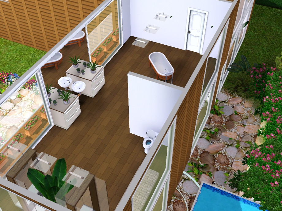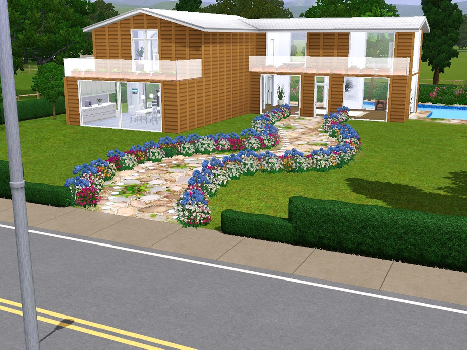 Its fully furnished and it has a wonderful pool-area where your sims can relax:D