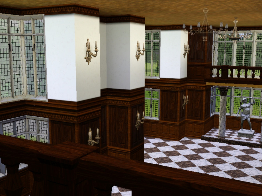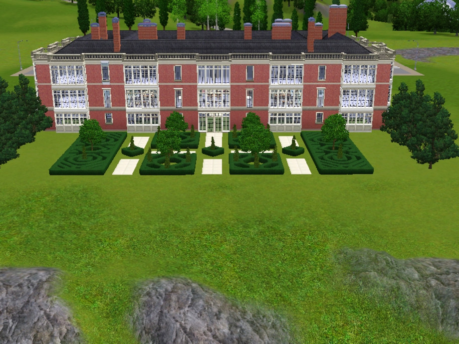 An extensive and beautiful Elizabethan prodigy house complete with Great Hall and Long Gallery. I have constructed undecorated floor plans (complete with doors and fireplaces) on the ground and first floors. The top floor has a great deal of empty space for creating your own private appartment fo your sims.