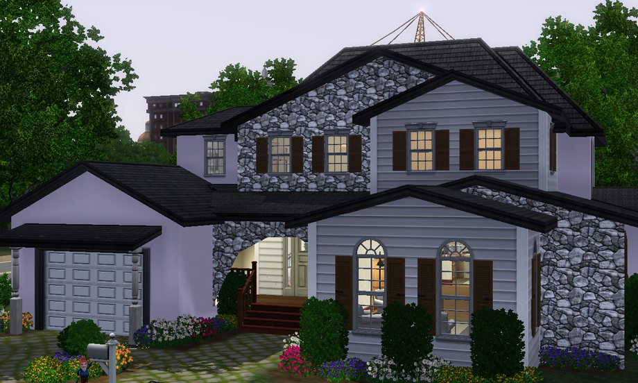 This cute, suburban home is great for the growing sim family. features three bedrooms, office, attached garage and lovely garnden. Fully furnished, no CC.