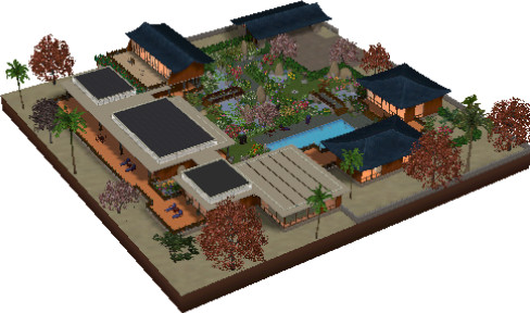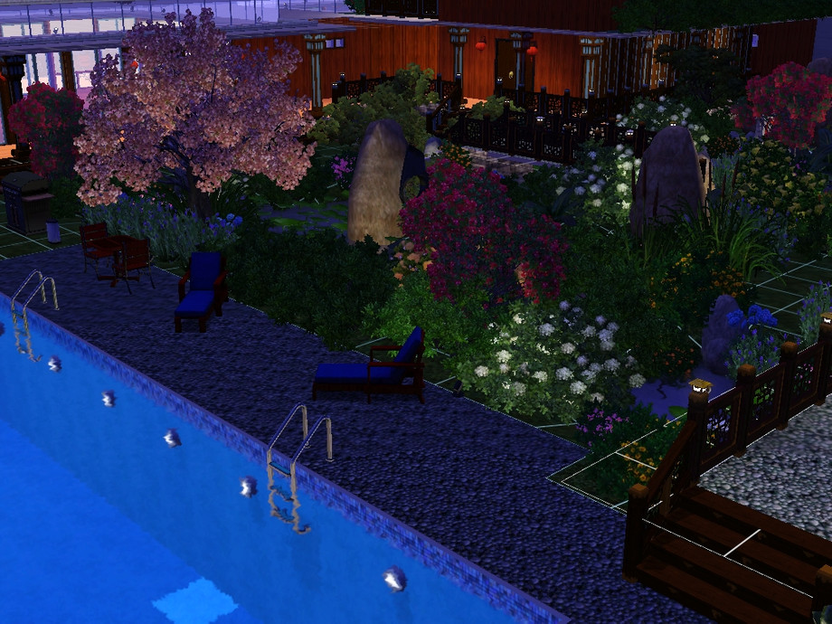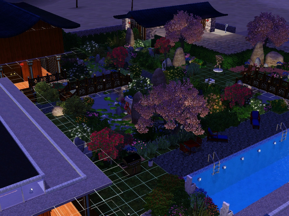 Oriental inspired compound featuring large flowing living spaces, 3 BR, 5 BA, Karate House and 4-car carport. Sunken master bath with garden and dramatic foyer with large interior garden. Highlight is a large Japanese inspired garden courtyard which includes a swimming pool. This lot contains no custom content!