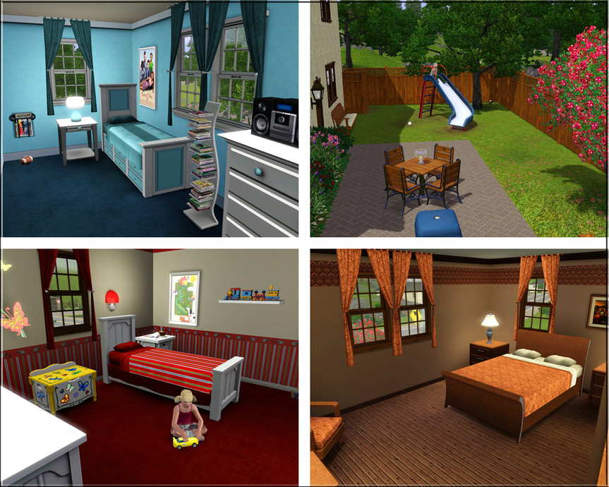 Three bedroom family home with kitchen/dining, living room, study, two and a half bathrooms, car port and front parking, private rear garden with bbq patio. No custom content or store items used and the Lot has been fully tested.