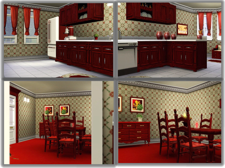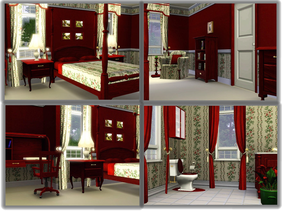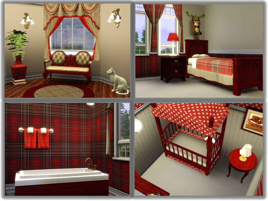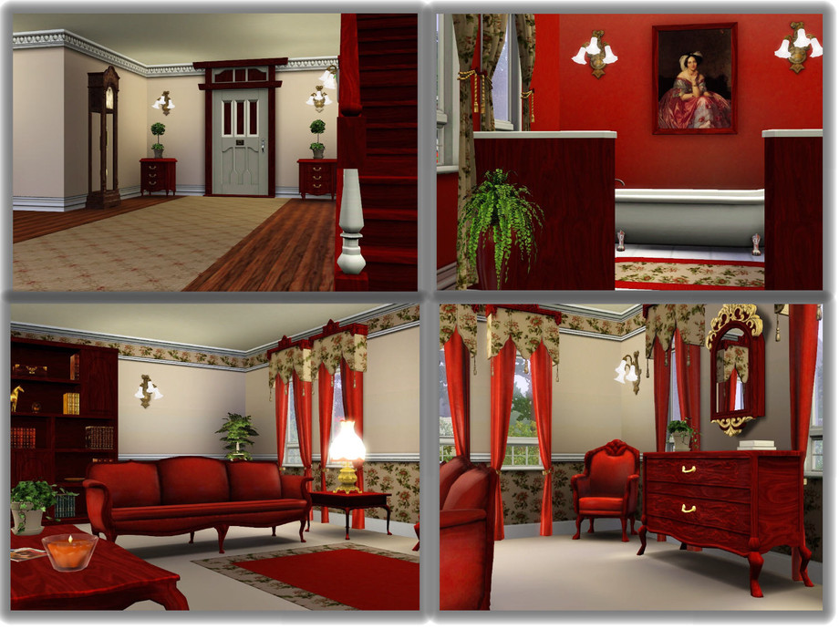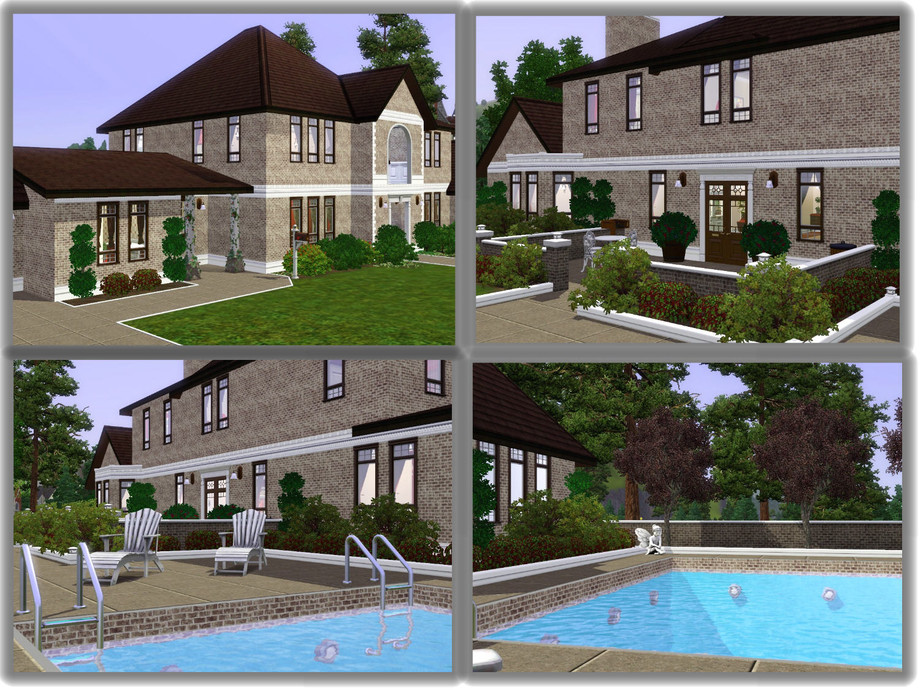 This beautiful traditional home is ready for occupancy by your favorite Sims family. Built of the finest brick and materials, this home is a steal and won't last long. The exterior of the home has a single car garage, a pool, patio dining areas and beautiful landscaping. The interior is decorated in shades of red, beige and hunter green. First floor has a large foyer with double staircases, a large living/media room, a full bath, a large kitchen and an informal dining area. Second floor has a large foyer, a master bedroom suite with an adjoining bath, a nursery off the master and a little boy's bedroom with an adjoining bath. Enjoy!