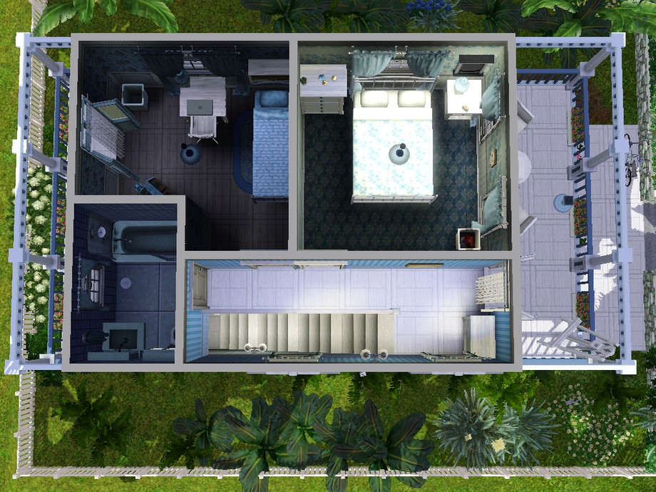 On the second floor there are two bedrooms and a bathroom. If your sim bachelor, second bedroom can be converted into an office. The house has three terraces. Parking is not provided in this tropical paradise is necessary to ride a bike :)