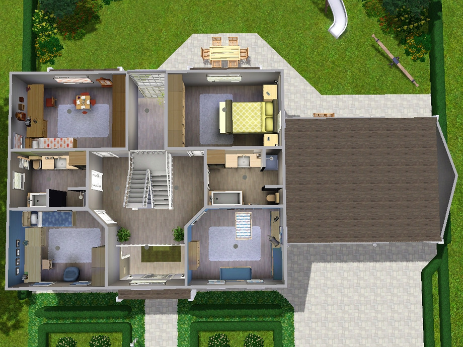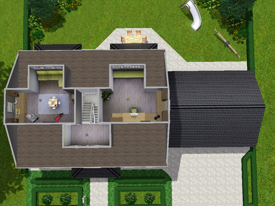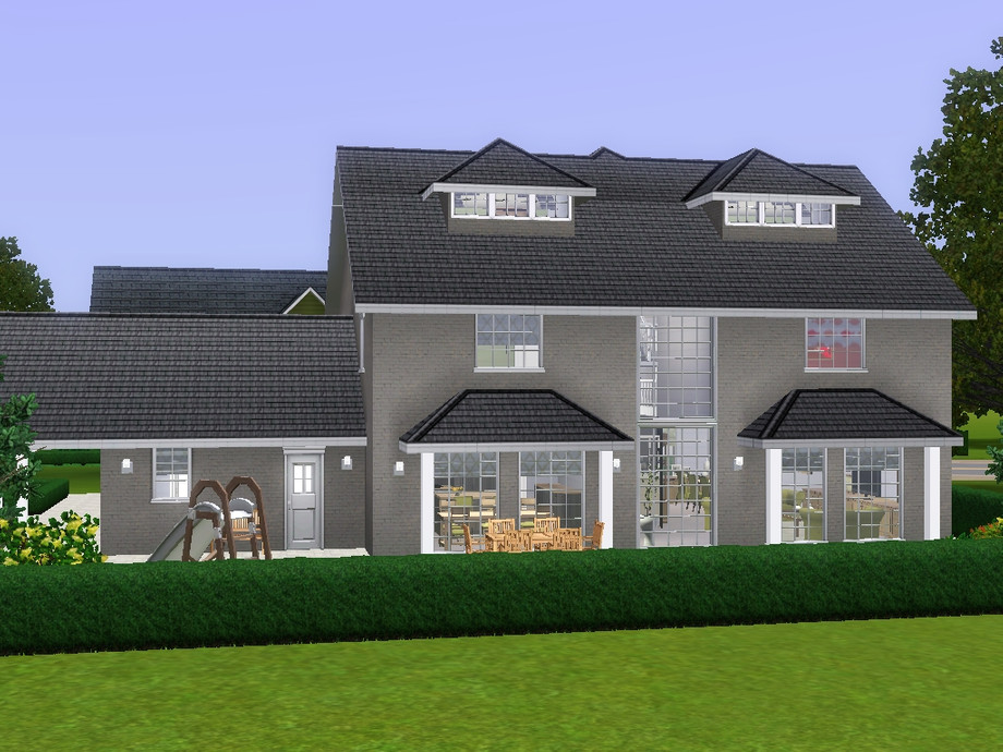 An American manor with spacious living and dining area, kitchen with breakfast nook, laundry room, indoor garage and a carport. Upstairs are 4 bedrooms and 2 bathrooms. In the attic there is a study and a play room for the kids.