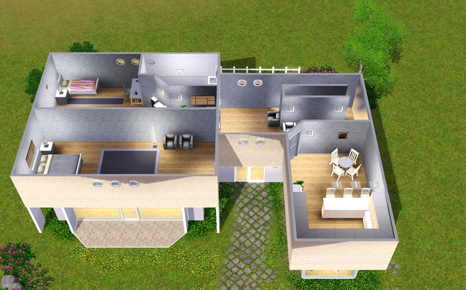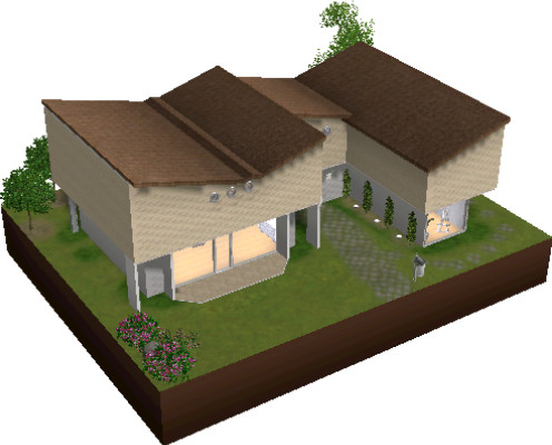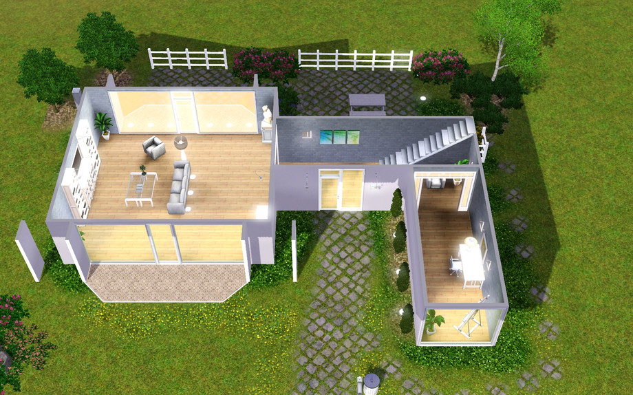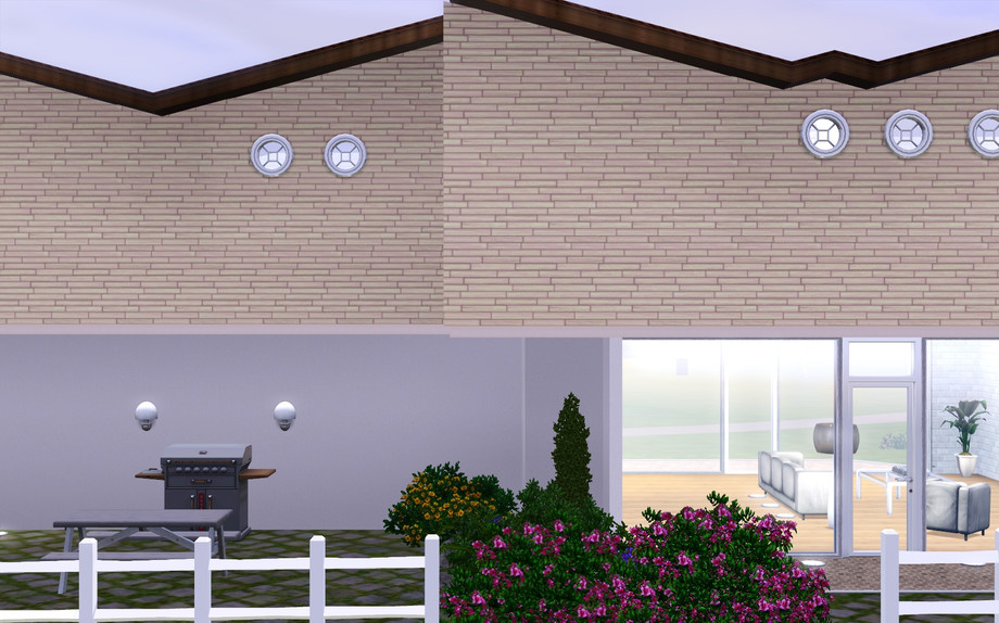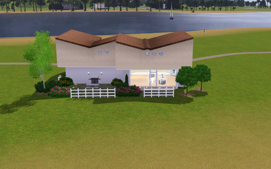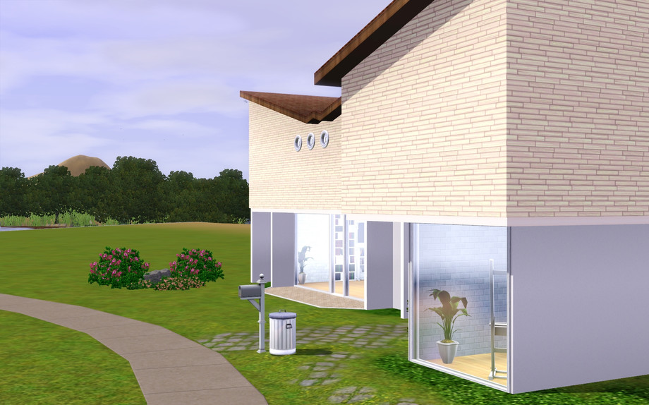 Exterior: cute garden with sweet flowers and a BBQ area waiting for your sims!