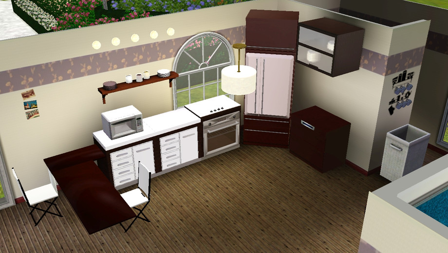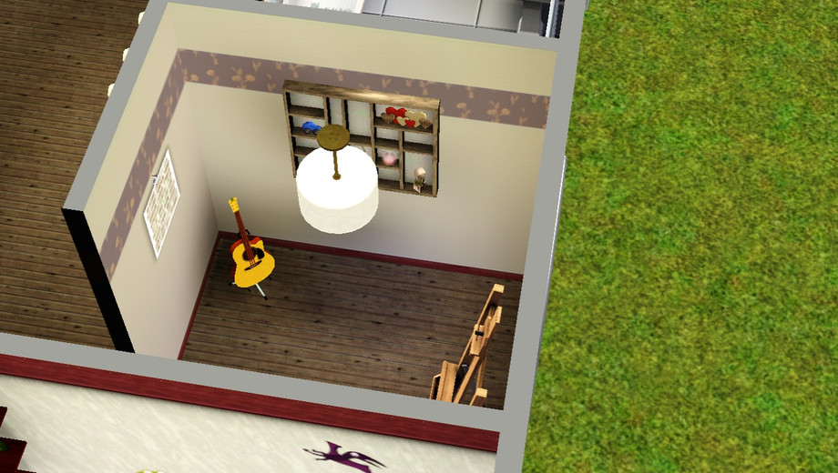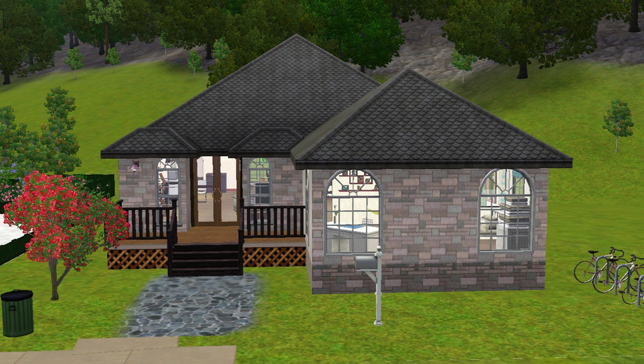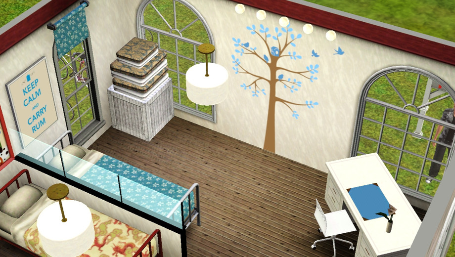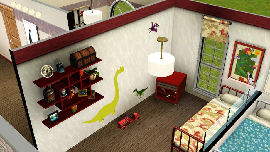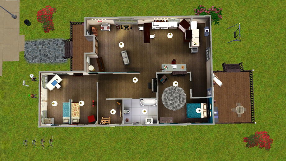2 and a half bedrooms, a master bedroom and one split down the middle to form a boy and girls room. The outside isn't perfect, but landscaping isn't my finest skill so feel free to change it about!