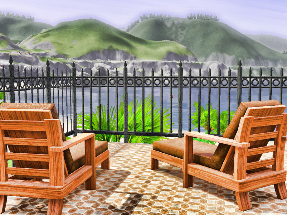 3 bedroom 2 bath. Partly furnished (bedrooms left unfurnished for your sim's individual flare). Fully landscaped with pool, ocean views, and attached garage