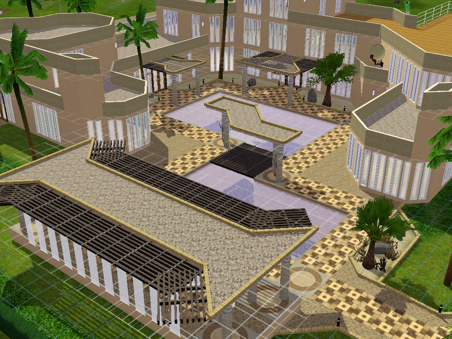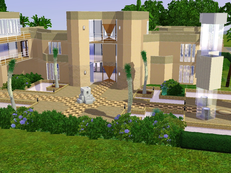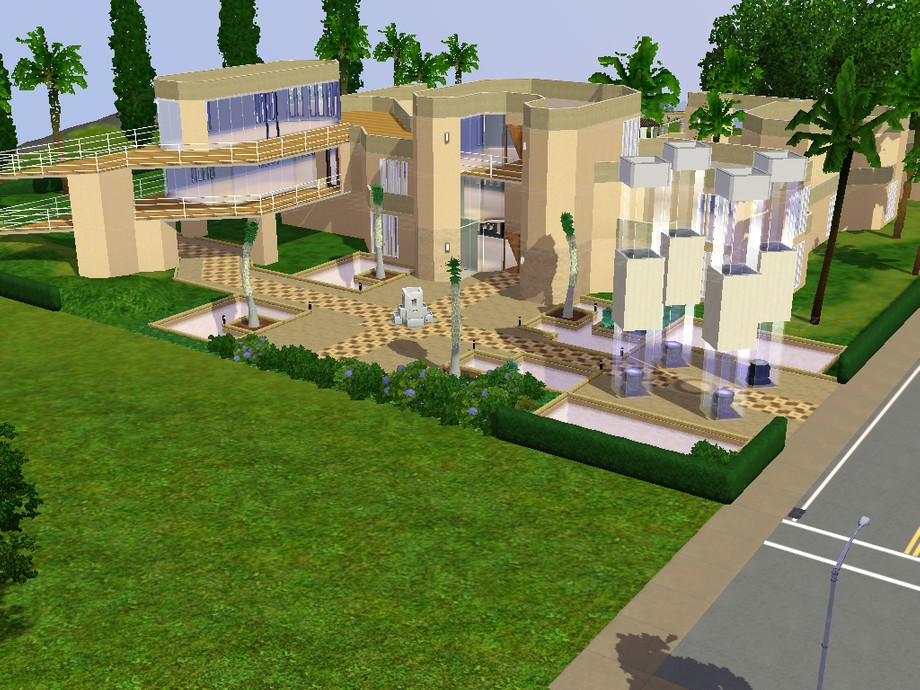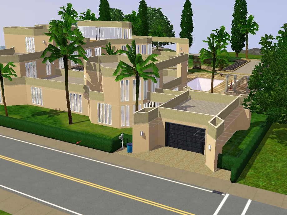 Beautiful colorado style modern house.This modern marvel has 2 huge bedrooms,2 bathrooms an exercise room on the roof(if desired) and two extra rooms with enough space to fit 2 kitchens and two parlours! The outside has a breath taking pool and light towers that say to the sims world.....my domain is celestial!
