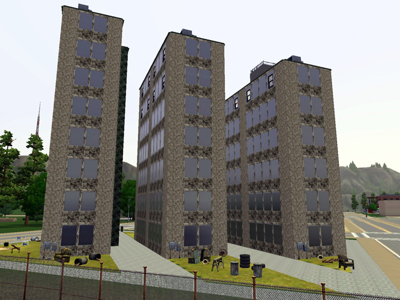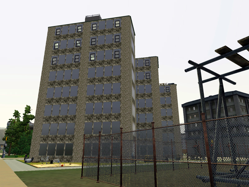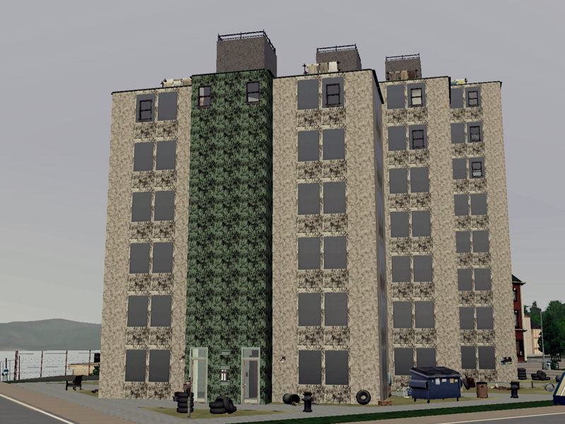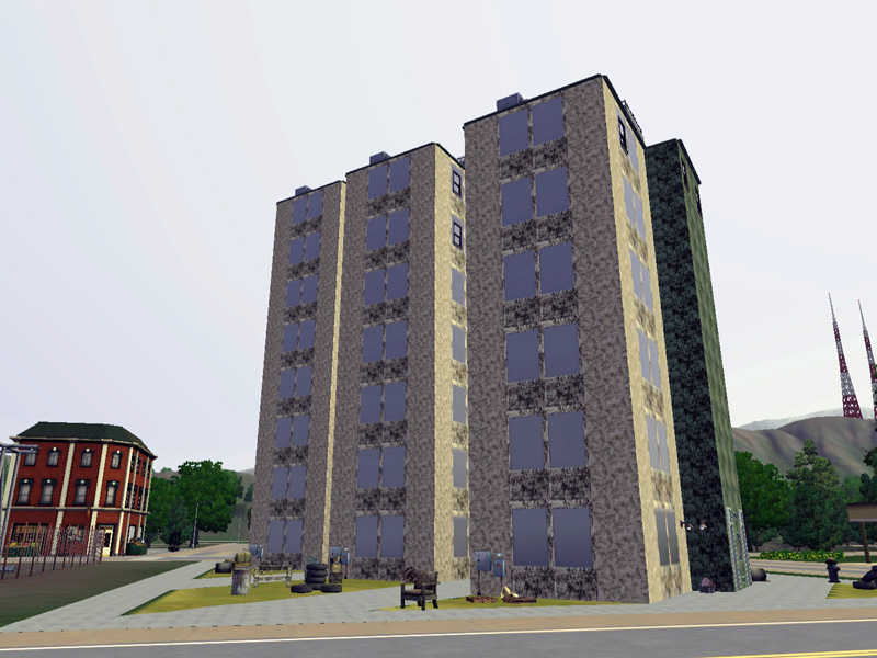 Dirty, ugly, a place with no luck and happiness. Not a place to live in satisfaction, but for all the poor they lost their hope, the right place to live. Details: 4 NPC - apartments, sims - apartment with 2 floors, kitchen, 2 bathrooms, master-bedroom, single bedroom, livingroom and room to play dart and table soccer. Fully furnished and decorated, by matomibotaki.