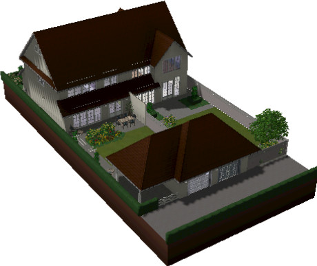 Spacious semi-open family house with large open-plan living, dining and kitchen area. Upstairs are 3 bedrooms, a bathroom and an office in the hallway. Outside is a cosy but spacious garden with separate garage and carport.