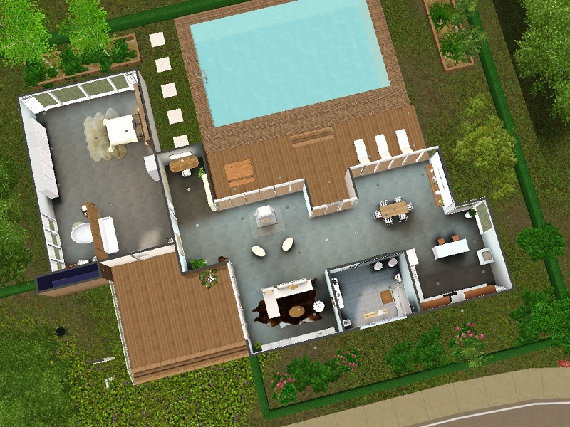 Base Game and custom content. Mangrove trees from Roaring Heights also used (your game will replace these if you don't have the world installed). Glass frosted block windows in main bathroom are from Luna @ lunasimslulamai.jimdo.com.