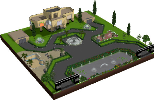 A house with a big terrain and a beautiful park in the front of the house.Have 2 garages in slope,a pool.