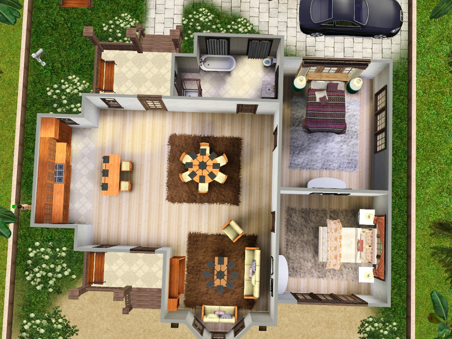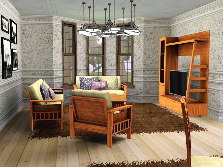 This is traditional architecture design with plenty of modern details inside and warm colors. Your Sims who love this design will be happy in this house. The house looks small but all the rooms are large enough.