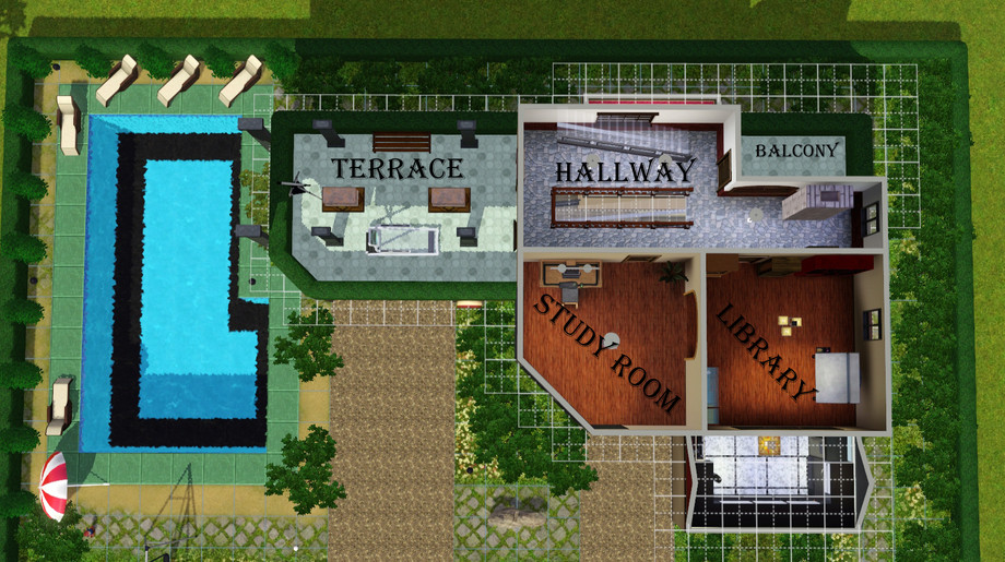 M4r14n11 Villa 7 is a modern villa with 3 stories for about 3 or 4 Sims. It is distributed in the following way: