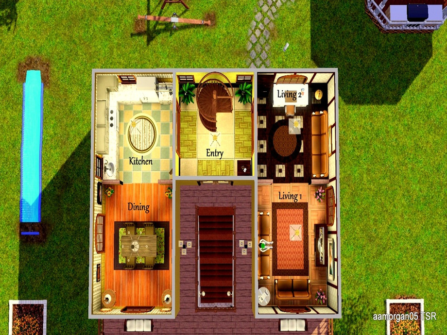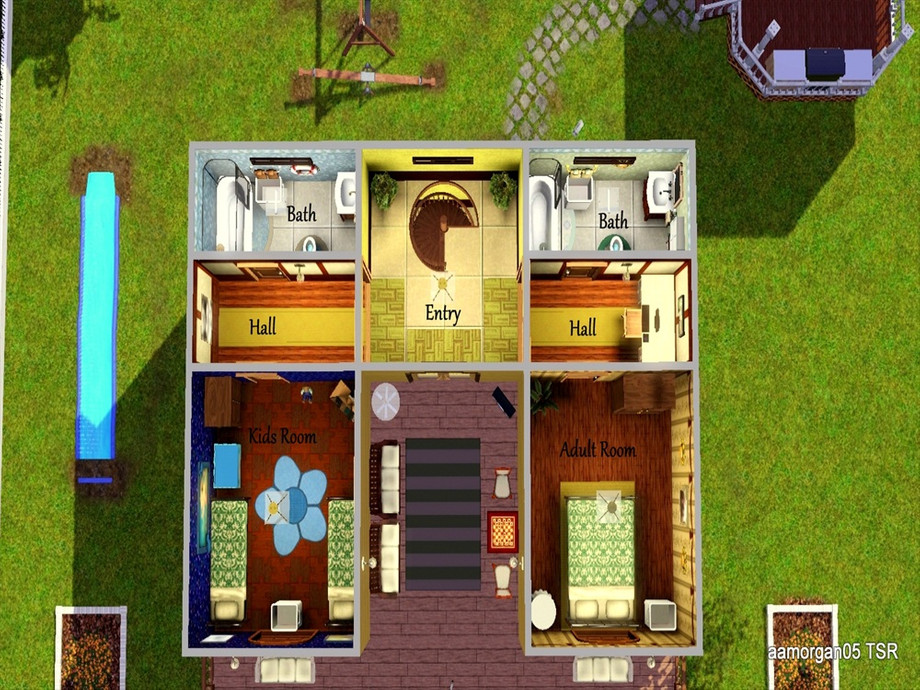 Hey ya'll, I made this for the sims 3 challenge on the forums and thought i'd share it with everyone. I thought i'd try something a little different look wise. I hope you like it :) it's 2 bed 2 bath, no cc and play tested. Enjoy!! Oh and ps the bed's in the over head screen shot aren't the ones you'll get. the individual bed screenshots are the beds you get. sorry :)