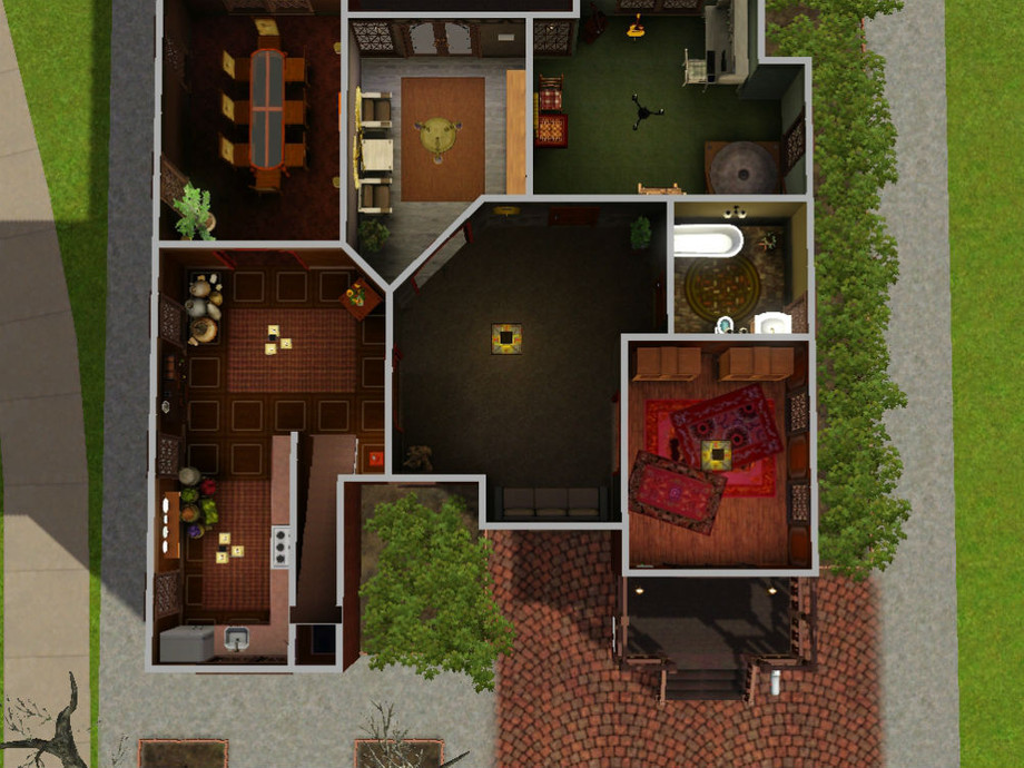 This redbrick house once was claimed to be the one which beauty never fades, but after its last owners moved out, it became dark and unwelcoming. Mahidevran is a two-story house designed for those who like Arabic themes. The walls and floors, along with furniture carry warm colors. There is a staircase, which leads to the roof, where you have an open space to throw a party or sunbathe during the summer. Mahidevran consists of four bedrooms (a master bedroom and three smaller ones), a kitchen with adjacent dining room, a study room, and it has door to the backyard. Enjoy this Arabic dream along with your sims!