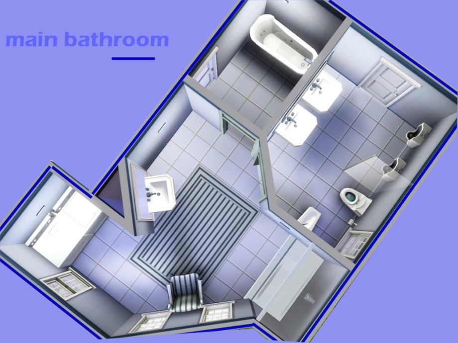 The main family bathroom is a feature. It is actually a combination of spaces within a defined use area. Entry to the powder room [toilet, bidet, 2 urinals and 2 handbasins] is off the entry; through an arch then, to the shower and laundry; through a second arch to the bath, and the exit back into the livingroom.