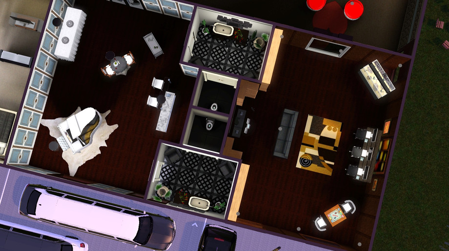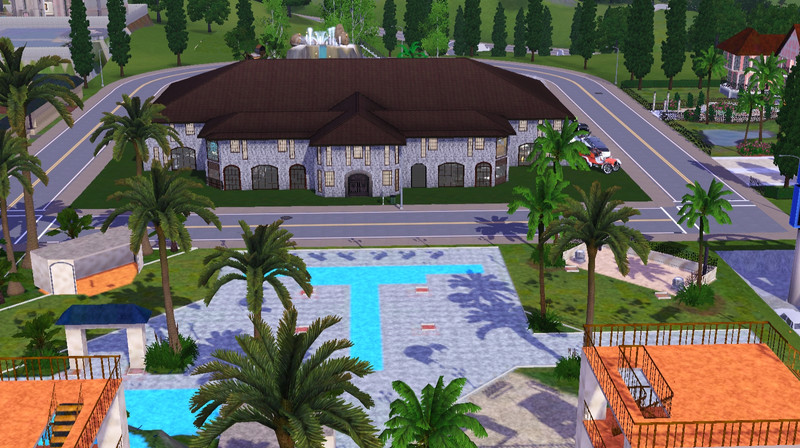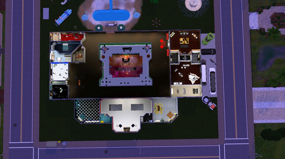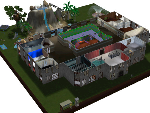 This is a two-story house/mansion, I made it with my future house in mind. I used the tools available and made my dream home. Its mainly for entertaining so it only has 3 bedrooms but it has a butler's room with a kitchen and small TV room. This house has a garage for 2 car parking, an arcade, an art room, a formal living room, a retro candy shop room, a cinema-theater, a gym, a formal kitchen, green room entrance, stairway entry, a washing room, a band room, a news room, a chill spot at the second story stairs level, 2 corridor lounge areas, a library/office, an outdoors pool with a jacuzzi and a fountain, it has a total of 9 bathrooms, and finally a 2-story CLUB.