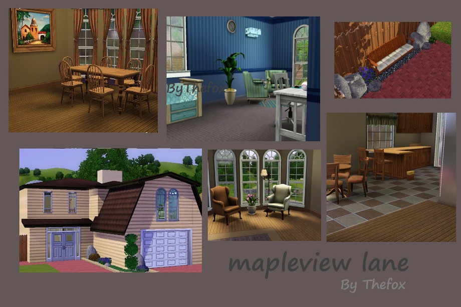This house has enough room for up to 4 sims. It also has 2 bathrooms and 1 downstairs loo, 1living & dinning area and a small eating area in the family sized kitchen.