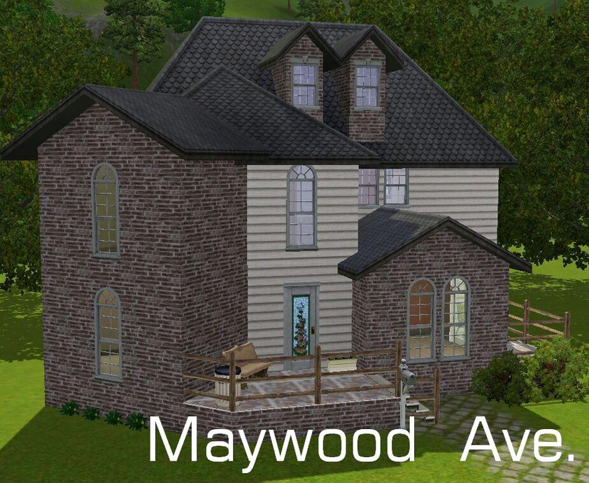A suburban home for large sim families! 6 bedrooms, 2 bathrooms. ;D Many thanks to cyclonesue for her weathered brick texture!!!