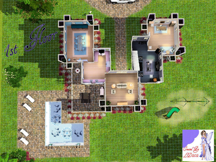 I has master bedroom and 2 bedroom , nursery, den and family room kitchen and dining room and pool with patio. let me know what you think.