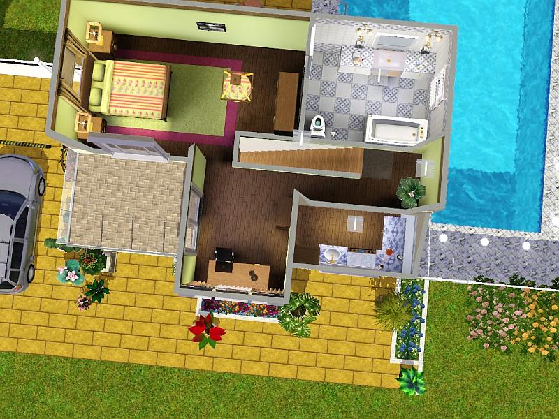 Cozy little home for a single Sim or a couple with a nice garden and a swimmingpool.