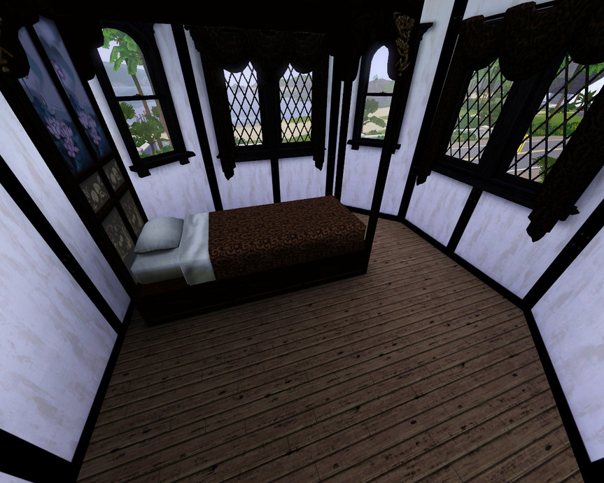 An attempt at Tudor style architecture set in an English landscape. Interior is at its most basic. 1xMain Bedroom, 3xExtra Rooms Upstairs, 1xBathroom, 1xRestroom, 1xKitchin with separate dining area, 1xLiving Area, 1xAtrium.