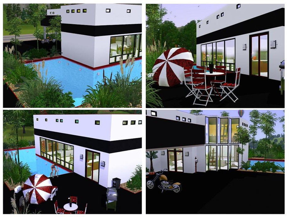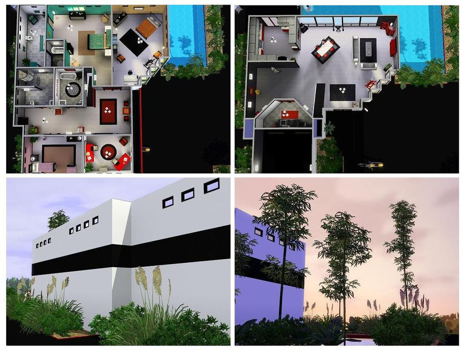 This 3 bed, 3 bath modern home is packed full of elegant style and color, and is the first in my upcoming series of modern homes. Perfect for that luxury loving single Sim, couple, or a small to large family. Features a large pool, tropical landscaping, an office, laundry room, 2 car garage, plenty of room to move about, inside and out, a fantastic kitchenette, and so much more. To keep the 'furnished' price down, no cars are included. Though, I did include a motorcycle. Contains NO CUSTOM CONTENT. Enjoy! ~ PenelopeT