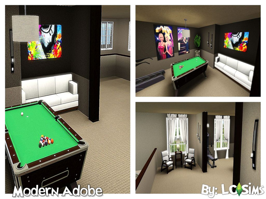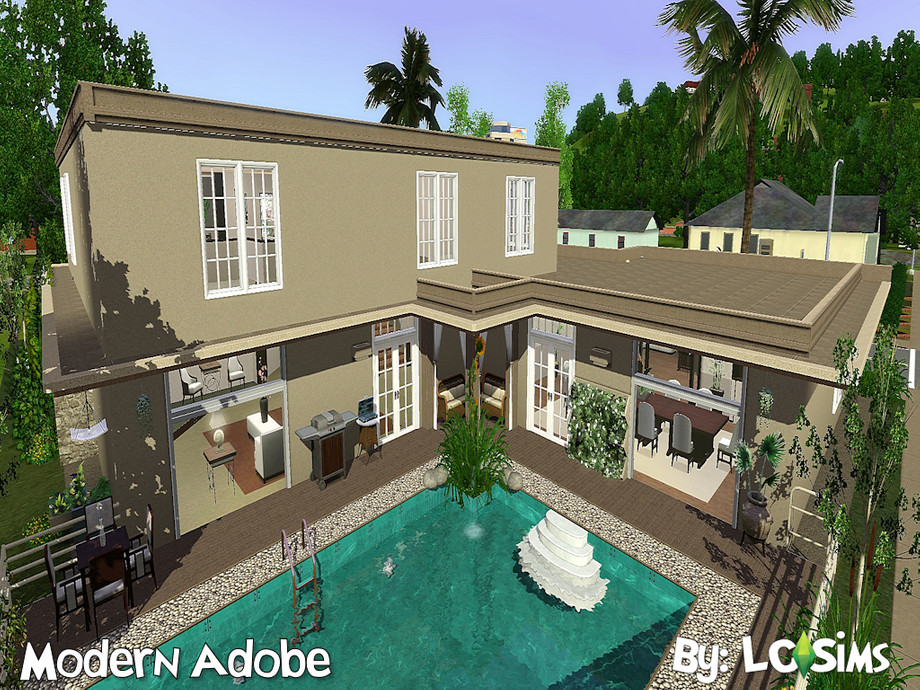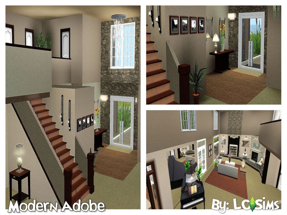 Modern Adobe is pure relaxation at it's finest. It has warm neutral tones that will warm your sim's little soul! This beautiful home has 3 bedrooms and 2 1/2 bathrooms with a two car garage. The home features a master bedroom on the lower level and a loft with two bedrooms on the upper level. A beautiful pool also comes with this spectacular home! There is even a two story foyer and living room! The home also has a laundry room on the first floor and the master bedroom has a walk-in closet.