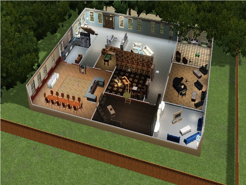 On the ground floor we have a bathroom, a study room, a ballroom (or dining room) combined with a second kitchen and a billiard room, children's playroom and three lounges, one open to the rest of the house.