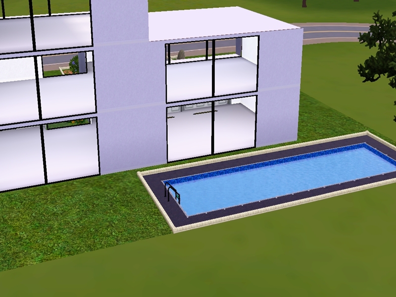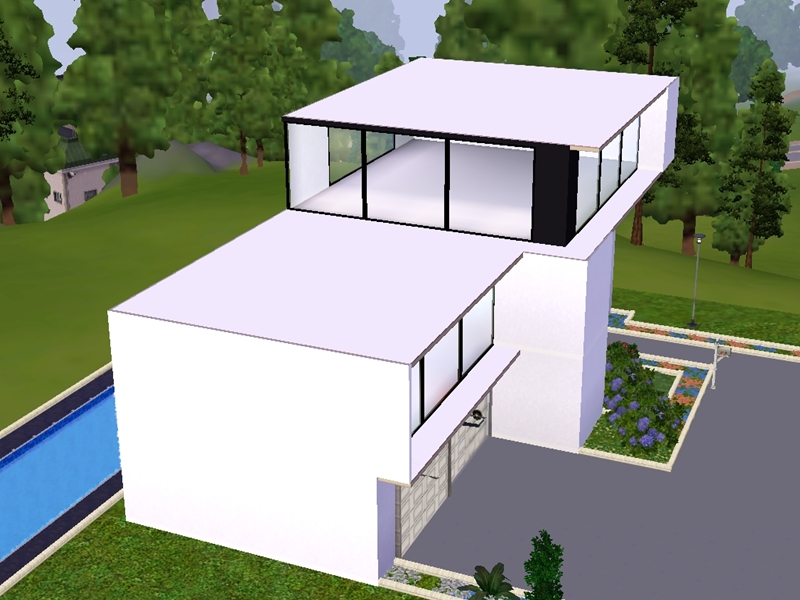 This house is a large modern home ideal for holidays. It contains three floors. The first floor contains a garage. I left the house unfurnished so you can decorate it as you want. The yard is not large, but it contains a swimming pool. I hope you and your sims enjoy this home.
