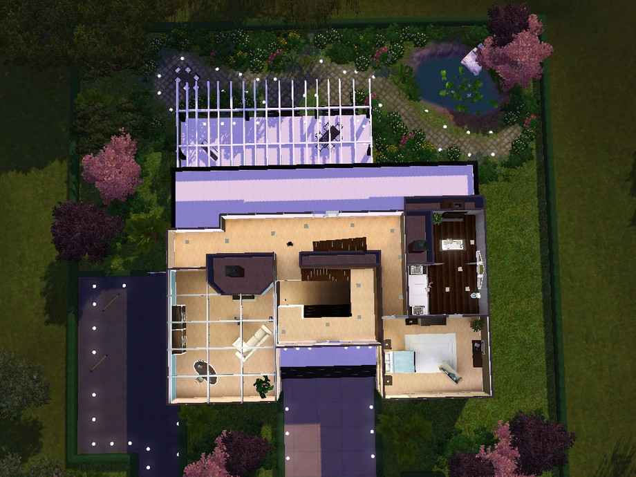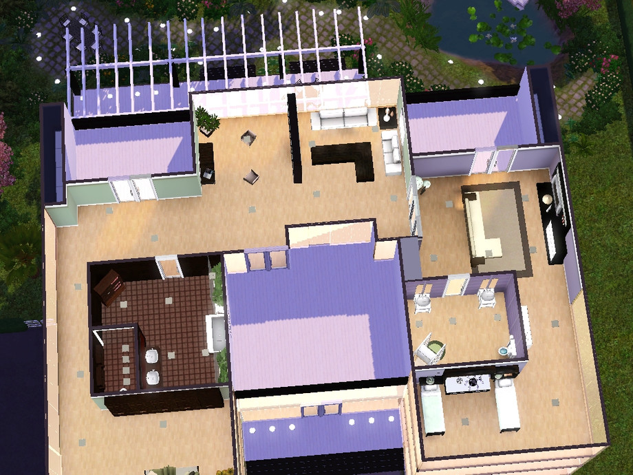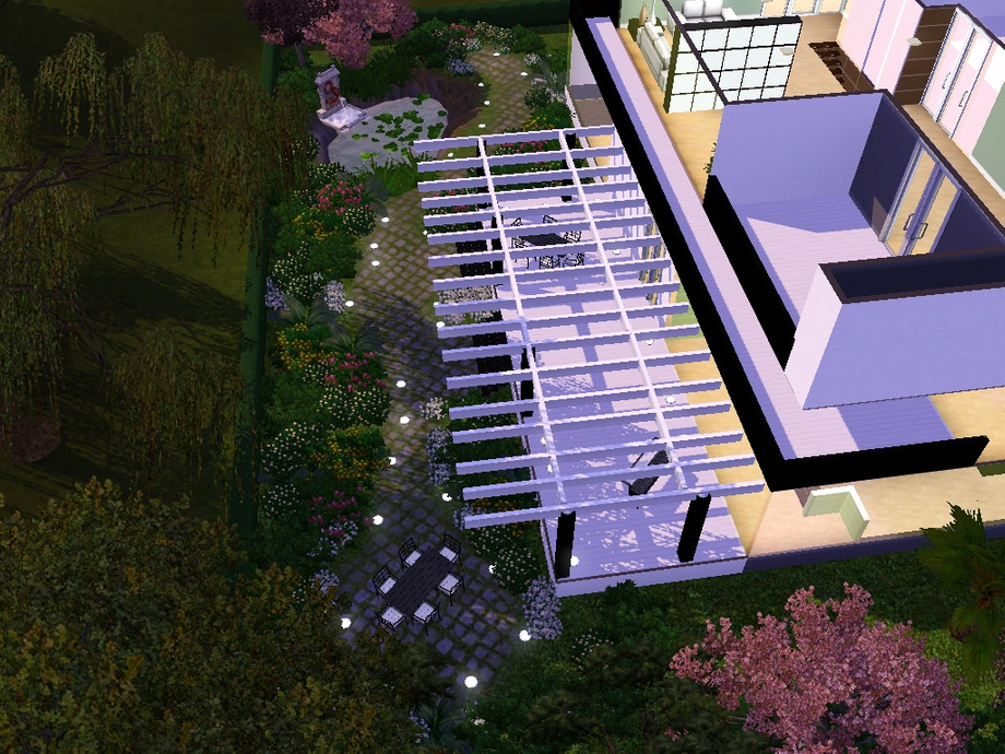 This gorgeous modern home features trellises and a asian theamed garden, the home has 2 bed rooms and 3 baths, a kitchen, dining room, living room, and many other sitting areas.