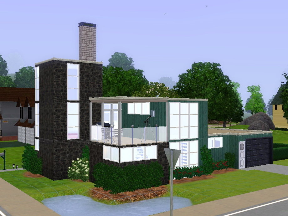 This modern home includes a 1 car garage, 2 bedrooms, a kitchen/dining room. A small living room right off the entrance to the house. A large open family room/exercise room. Its not the first house I have built, but its my first attempt at an upload.