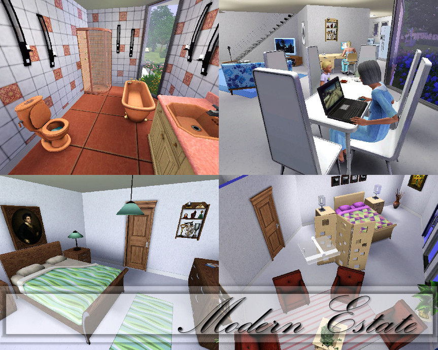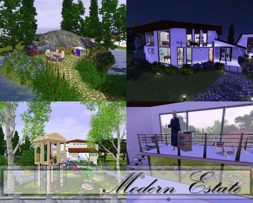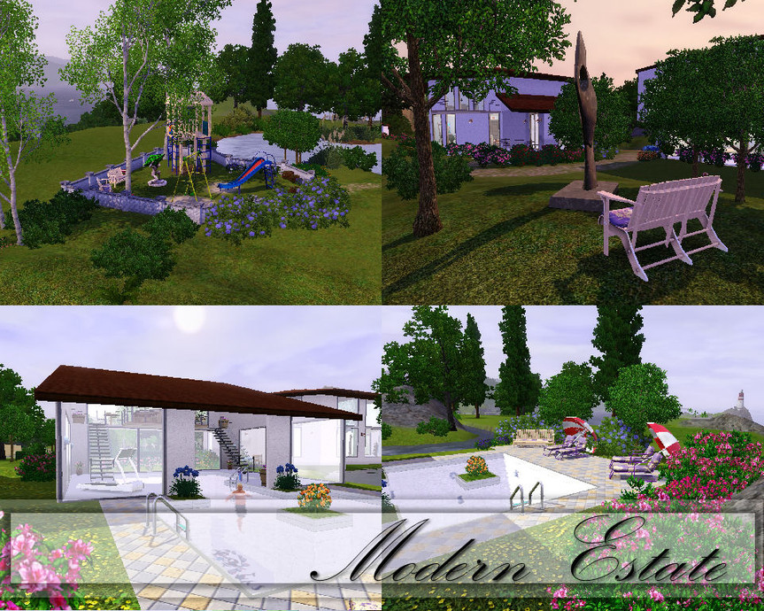 A large Estate for the rich family, features a Poolhouse with in and outdoor pool, bar area upstairs, big pond with an island and a BBQ area, easy to reach by walking on the path that has been made over the water. A playground for the kids and the main attraction is the maze in the front garden. Garage and room for 2 cars. Inside are several bedrooms and baths. The kitchen, dining and living area are in an open space. There is a small playroom, the main hallway and 3 of the rooms are not furnished, left for your own taste. Included are a couple of my patterns.