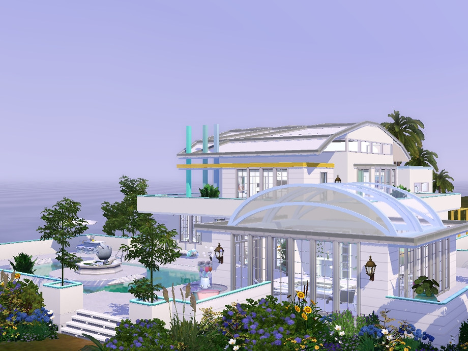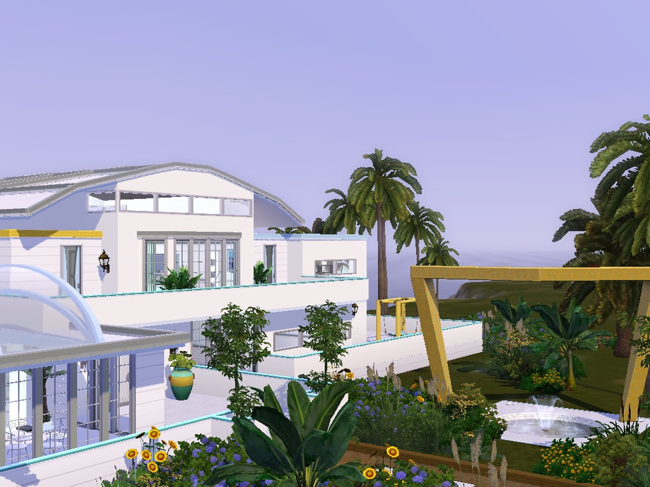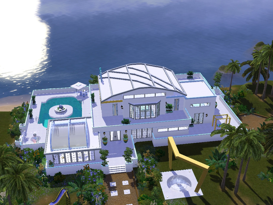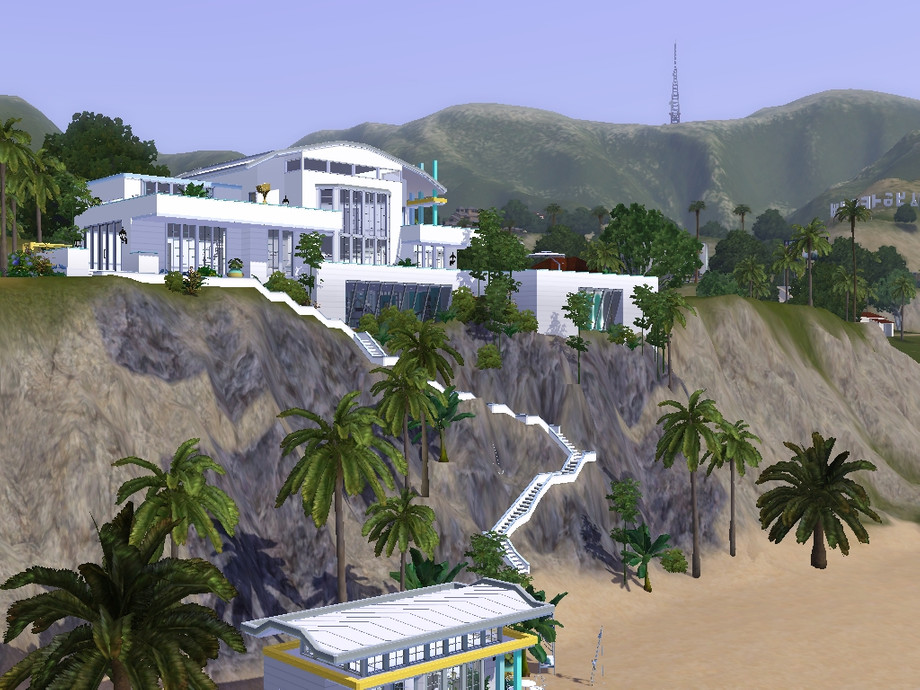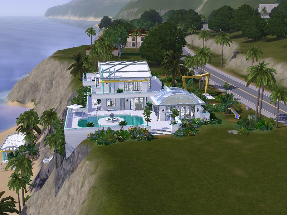 Built on a unique location at 64 Oceanview Drive in Starlight Shores, this villa offers 7 bedrooms,5 bathrooms, a jacuzzi, a swimming pool and a garage suitable for 3 cars. On the beach, there is a cabin with a bathroom and a kitchen. Your sims can also play golf but should be carefull not to throw the ball all the way down the cliff.