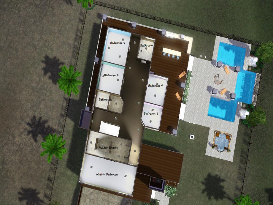 This house is perfect for the big celebrity sim families or the ones that want to live like them. It includes 6 bedrooms, 3 bathrooms one of which is the master ensuite, a formal living and living area, family room, large kitchen, laundry room connected to downstairs bathroom, dining area and a underwater room by the pool...Your sims will love this house! Enjoy!