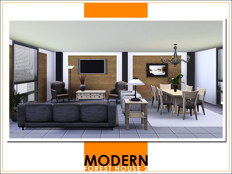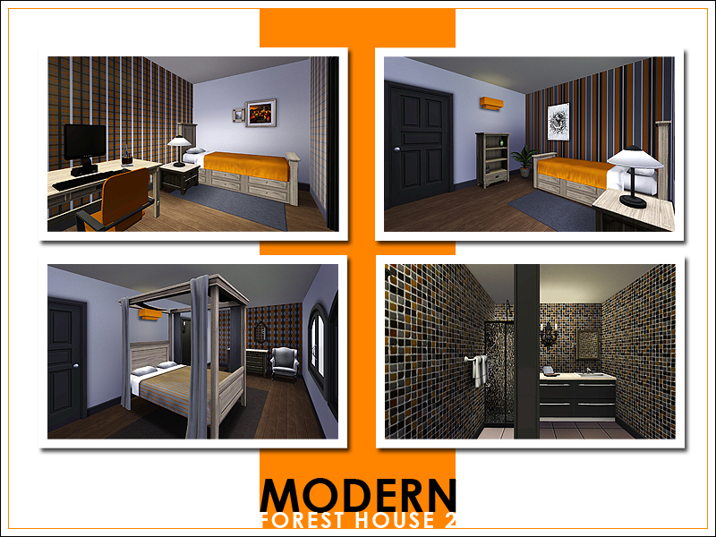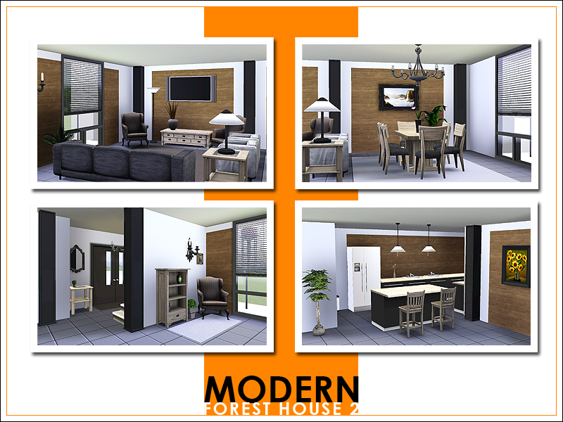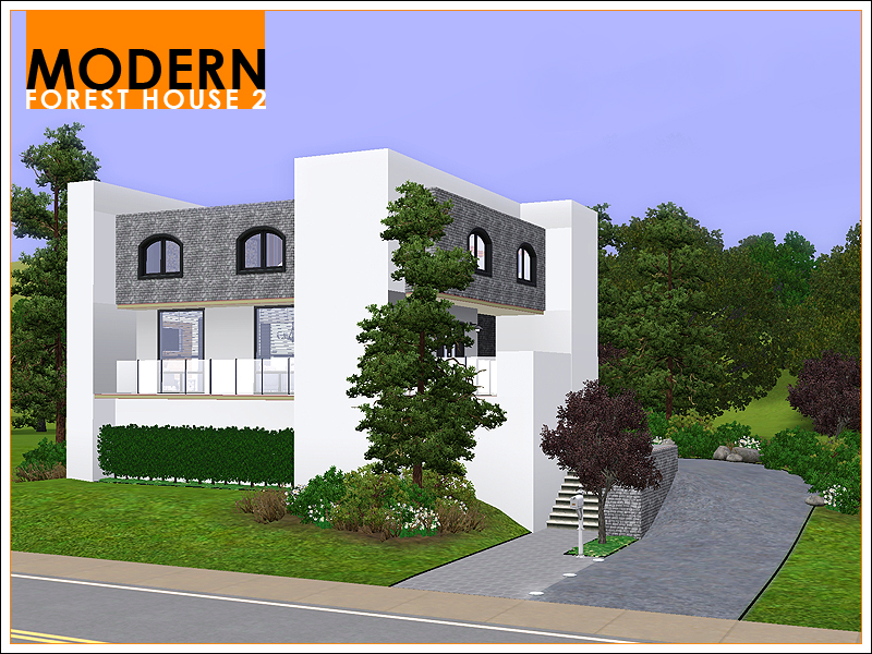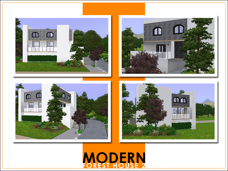 This second Modern Forest House has enough room for a family of four. There are three bedrooms (each with its own bathroom) on the second floor. On this floor you'll also find a small fitness area and a bar/lounge area. The first floor is completely open plan; it has a large kitchen with a breakfast bar, living-/dining room, reading corner, and a small bathroom. The driveway outside the house leads up to a covered parking space for one car.