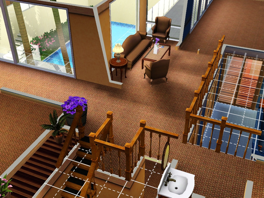 If your sims crave privacy, this is the home for them. Four bedrooms in house plus a one bedroom suite over the garage make this a great place for large families. Media and game room are open and comfortable. There is even a space for an elevator. (whenever someone makes one, youll be ready!) Hope you enjoy.
