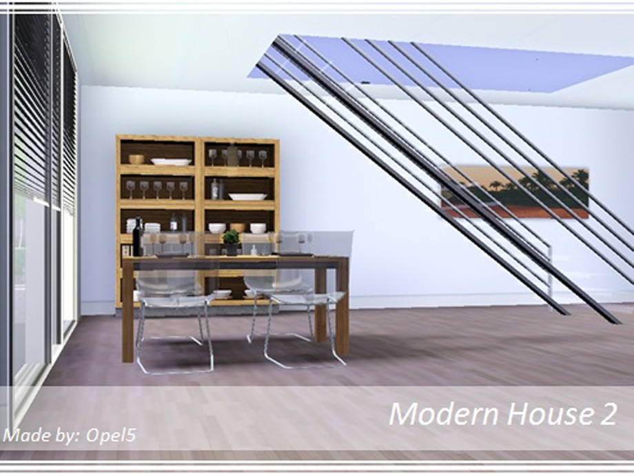 It's a modern house with 2 bedrooms, 1 bathrooms, a kitchen with fitted appliances, a spacious living room with a dinning table and a music room.