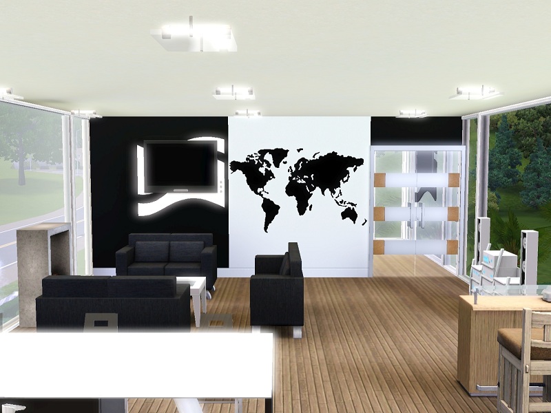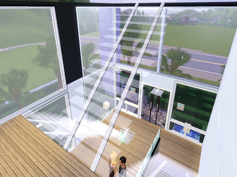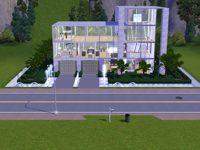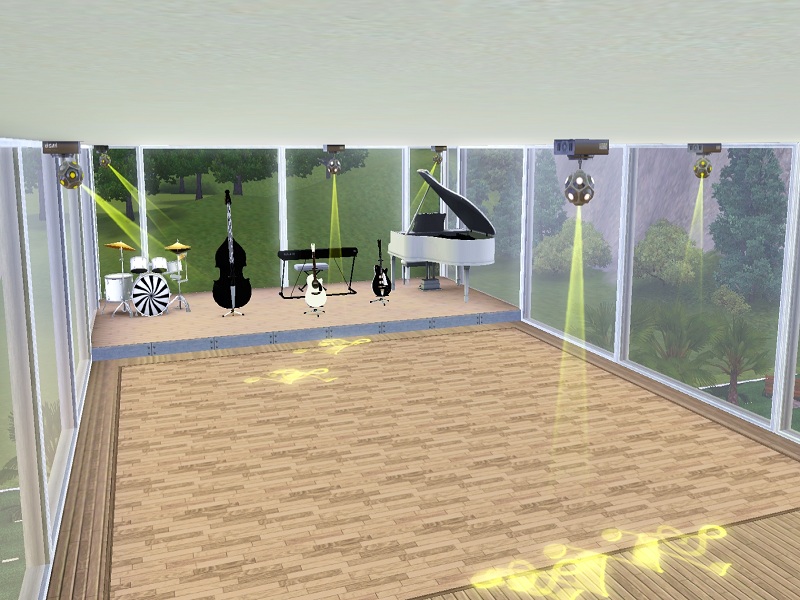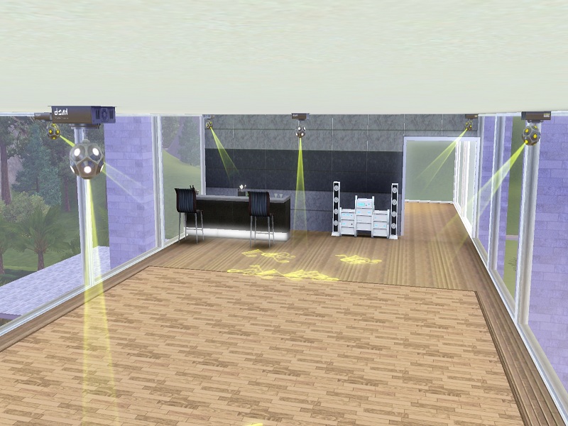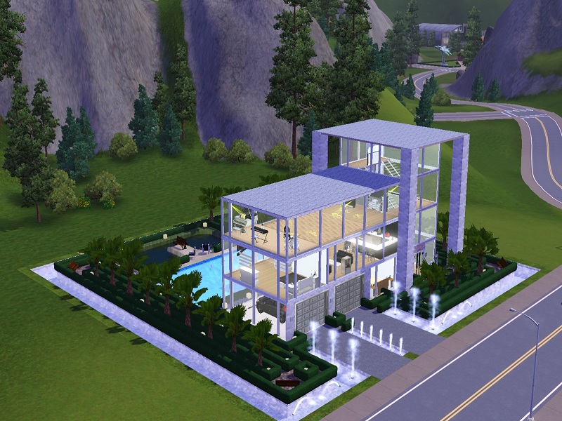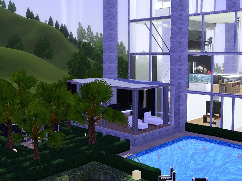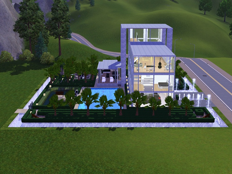 It's a Modern House for your sims with 2 bedrooms, a kitchen, a bathroom, a living room, a dance room and a garden with a pool, a pond, a hot tub and a barbecue