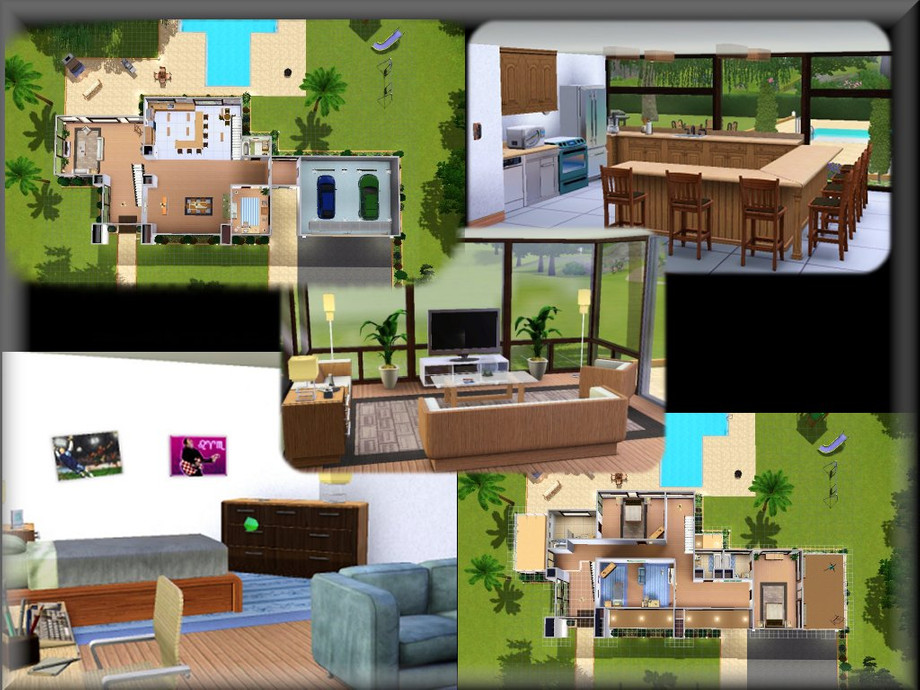A simple yet elegant home for your sims. There are 3 bedrooms and 4 baths, a 2 car garage, pool, patio and a kids playground area. The yard is flat but nicely landscaped with plenty of room for a garden or additional rooms if you need them. Haven't had a chance to playtest yet so if there are any problems please let me know.