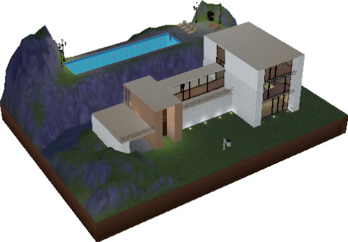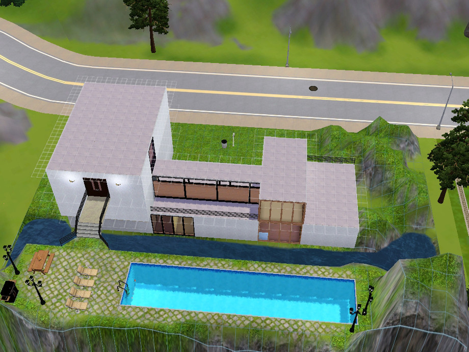 Not your typical house design, this is a modern home with a pool that you can access from the third floor and a lake on the patio. You will just love it :)