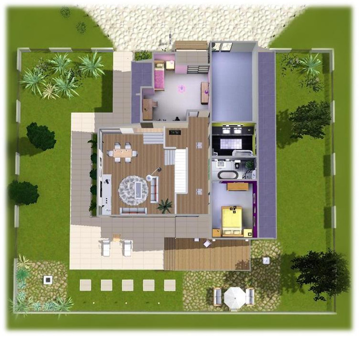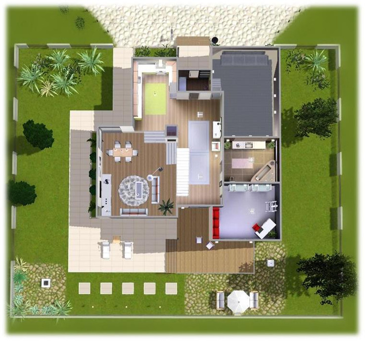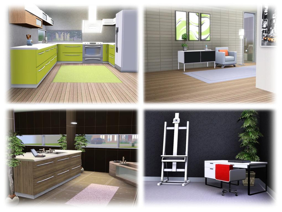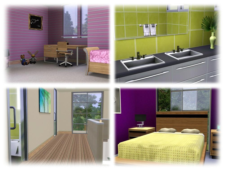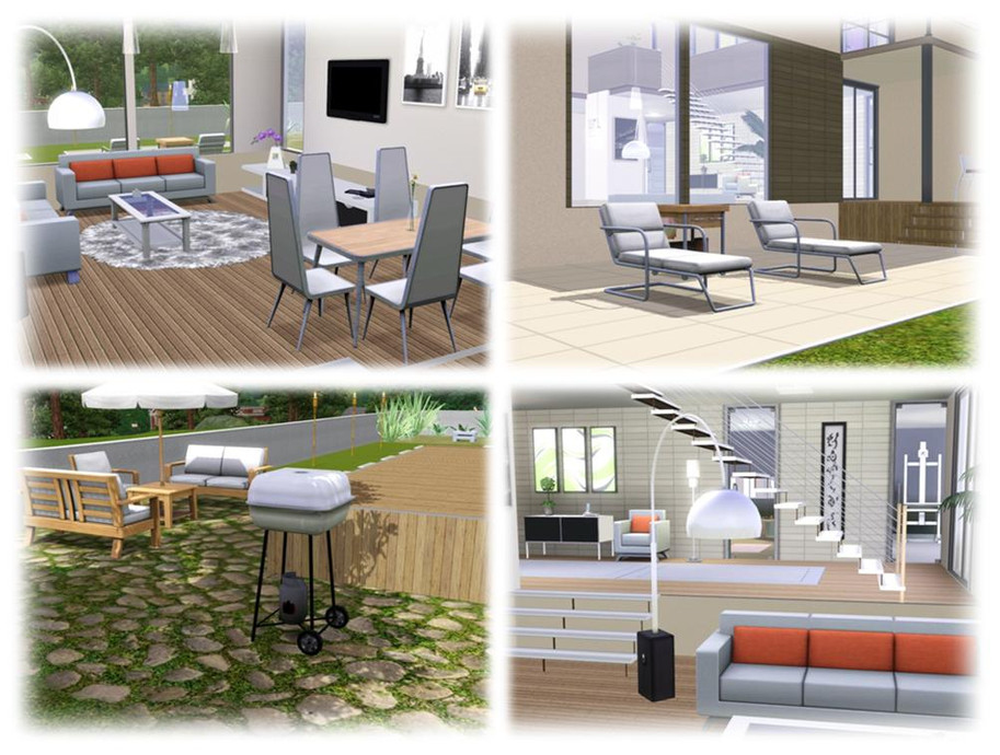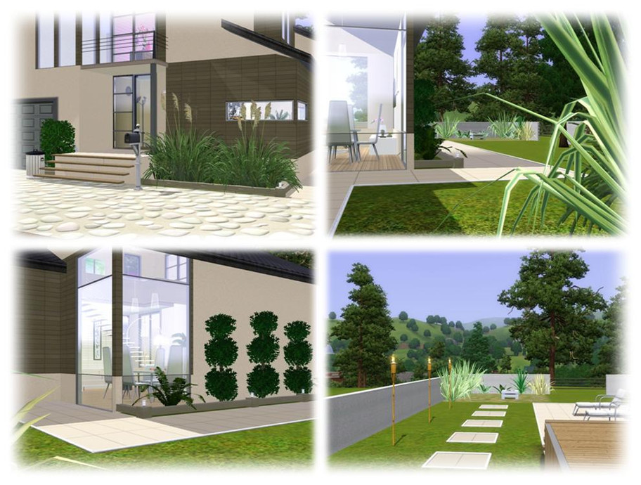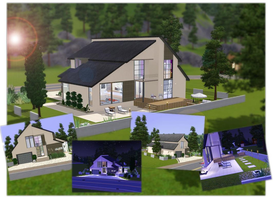 This modern and stylish house will be a perfect getaway for your sims. It features spacious livingroom, modern kitchen, formal dining area, large hallway, an office, 3 bathrooms, 3 bedrooms (one is not furnished - you can adjust it to your sim family), one-car garage, 2 small balconies, a deck and an amazing backyard. The house is fully furnished and decorated. Enjoy!