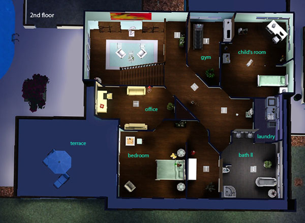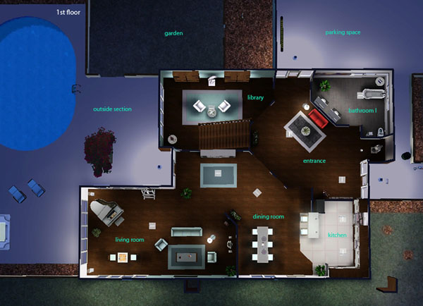 The residence has a luxury interior that leaves nothing to be desired. Outside your Sims can use the swimmingpool or relax in the whirlpool.