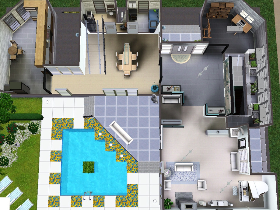 Modern Town House is a big house with cozy yard. Basement - secret room, where you can place all that you want, toilet, and room for party*s with bar. Ground floor - kitchen, dining room, toilet, laundry, living room, study. First floor - two bathrooms, four unfurnished rooms (i suppose bedrooms). I wish you like it!!!)))