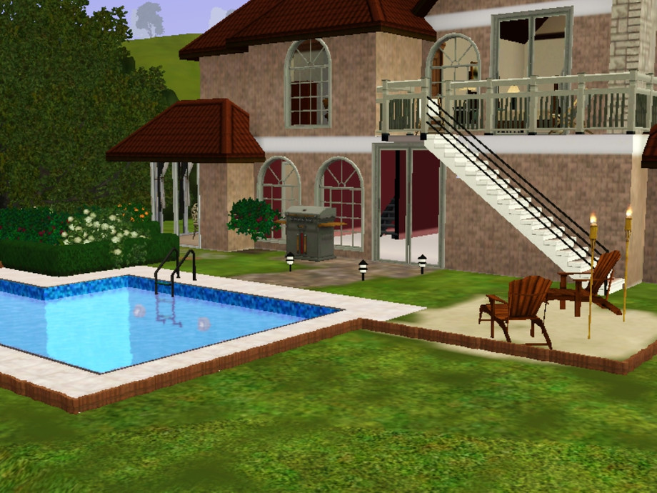This house is a 2 bedroom, 1 bath, and 2 car garage beautiful house. It has a pool and 2 decks added to the house. It is 2 stories. I worked hard to make it look good, so i hope you and your sims will enjoy it.
